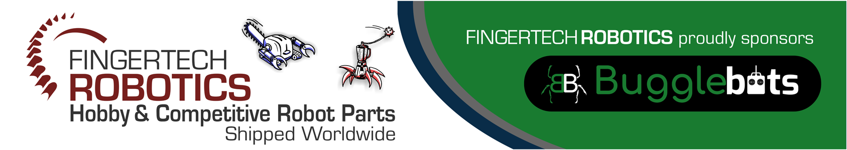 Bugglebots 2019 has an air date! Put 9th December 2019 in your diary to watch the start of what promises to be an epic series of robot combat. Bugglebots 2019 wouldn't have been possible if it weren't for our sponsors FingerTech & BTR Bot Parts.